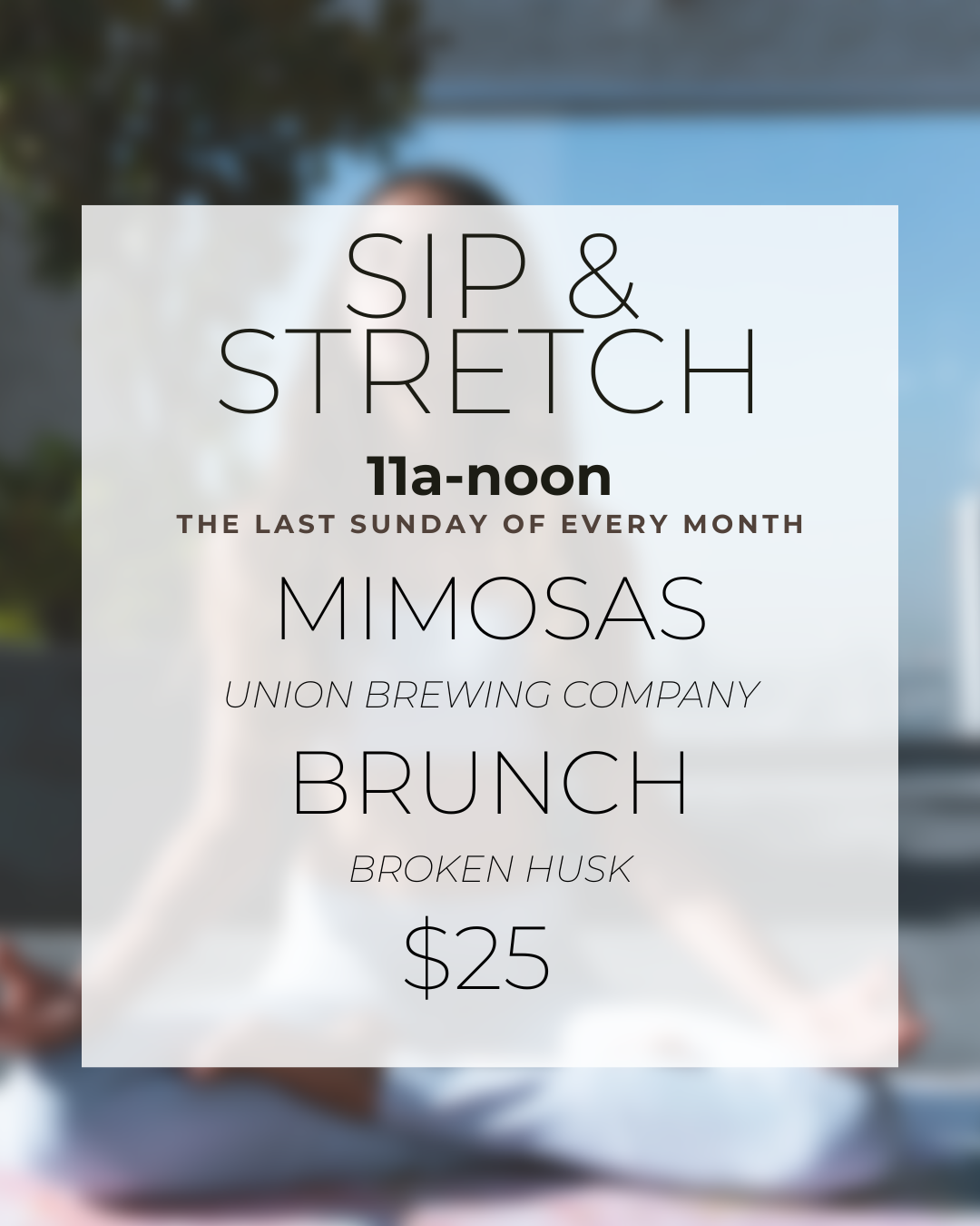 This event is a 30 minute blended workout (sweat/stretch). Attendees receive a complimentary mimosa and brunch.